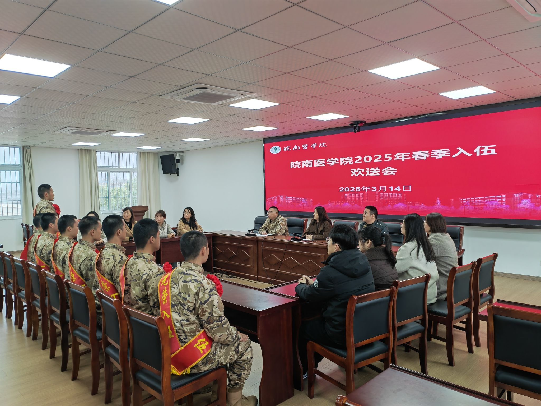 会上,校人民武装部部长张建英代表学校向应征入伍的同学们表示高度赞许,并致以诚挚祝贺。她指出,选择携笔从戎、投身军旅,是对个人理想的执着追求,是对国防事业的无私奉献,更是对国家和人民的忠诚担当。她嘱咐同学们,一要坚定理想信念,忠诚报效祖国。不断提升政治素养,进一步铸牢听党指挥、对党忠诚的政治品格,增强保家卫国的责任感与使命感。二要苦练过硬本领,争做优秀士兵。严格遵守纪律,磨炼顽强意志,早日成为“有灵魂、 有本事、有血性、有品德”的新时代革命军人。三要秉承校训精神,弘扬优良校风。时刻不忘皖医人身份,展现皖医人风采,发挥所学专业特长,为母校争光,为军旗添彩。四要牢记初心使命,勇于接受挑战。在军营中砥砺英勇善战、敢打必胜的血性胆魄,不断提升胜战本领,确保召之即来、来之能战、战之必胜。