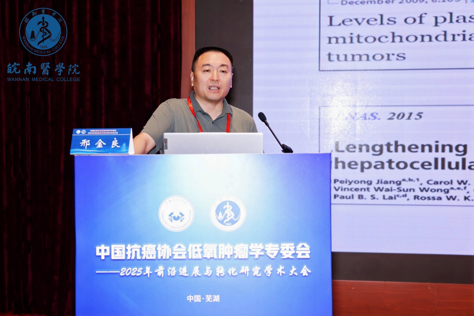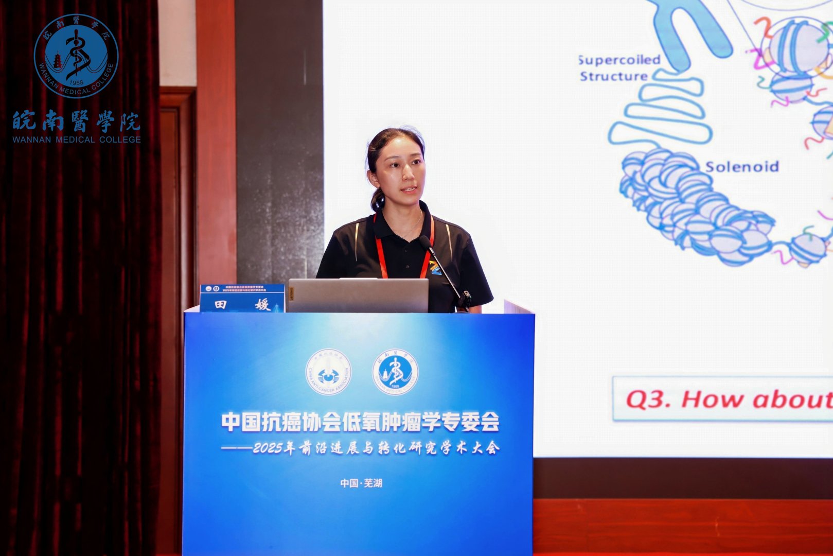 大会主席、我校知名校友朱卫国教授作主旨报告,重庆大学徐波、瓯江实验室黄传书、中山大学黄蓬等12位专家学者作特邀报告。青年学者报告专场以“低氧肿瘤生物学基础与临床转化”为主题,旨在为青年科研人员、博士后、博士及硕士研究生提供高水平学术交流平台,来自同济大学、郑州大学和南京医科大学等知名高校的8位青年学者围绕肿瘤低氧微环境、分子机制、靶向治疗、免疫调控等多个前沿方向汇报了自己的最新研究成果。