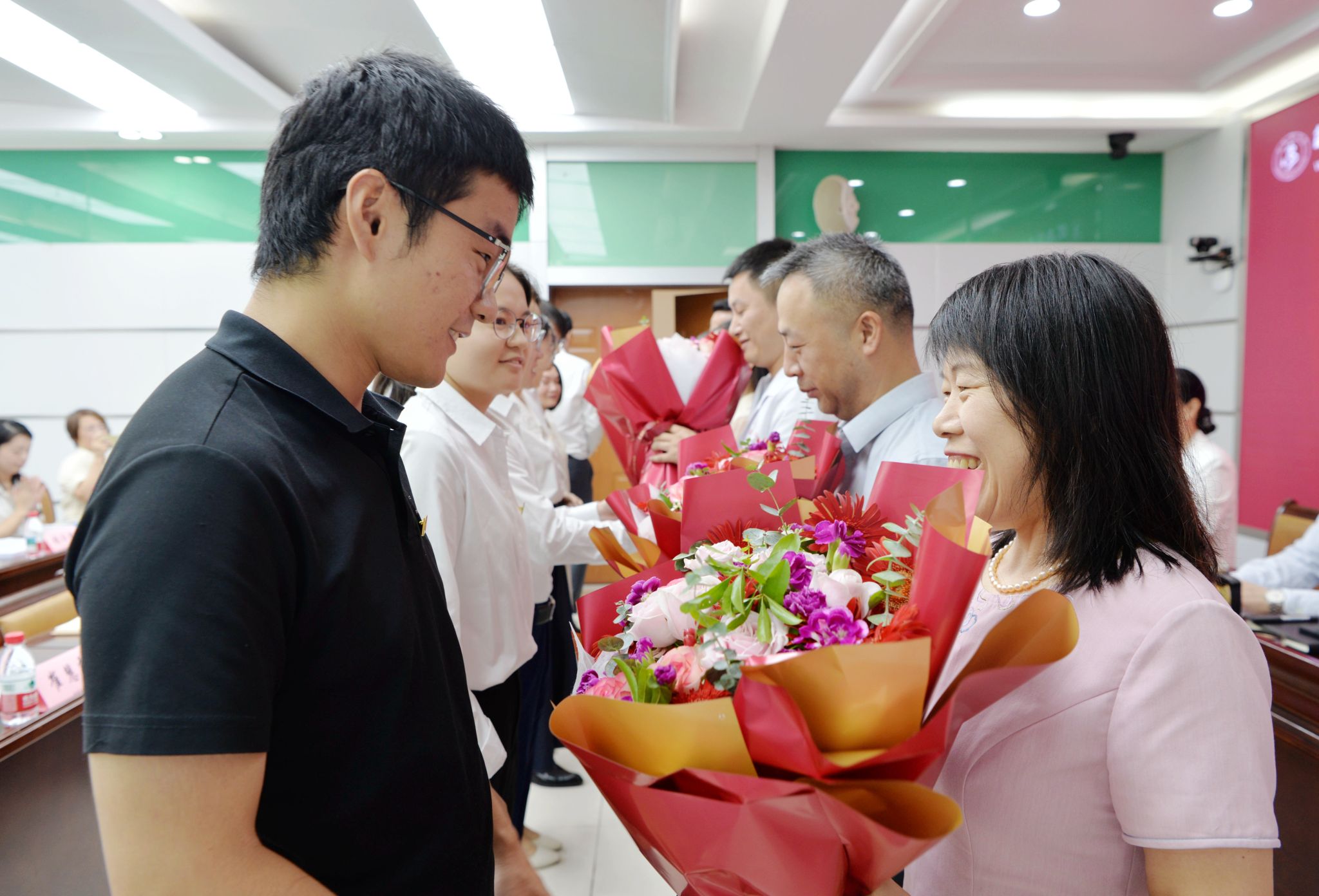 新教师代表、基础医学院束雨新分享了入职来“从站上讲台的紧张激动到教学科研初见成效”的心路历程;指导教师代表、人文与管理学院张环环表示将恪尽职守,全力做好新教师的“引路人”与“同行者”。