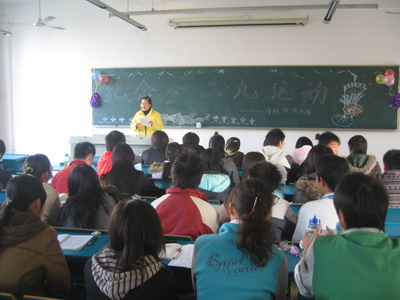 为纪念“一二・九”运动七十三周年,培养我年级学生的爱国热情,11月30日下午,医学一系2007年级团总支举办的纪念“一二・九”运动古诗词朗诵比赛在西103教室隆重上演。