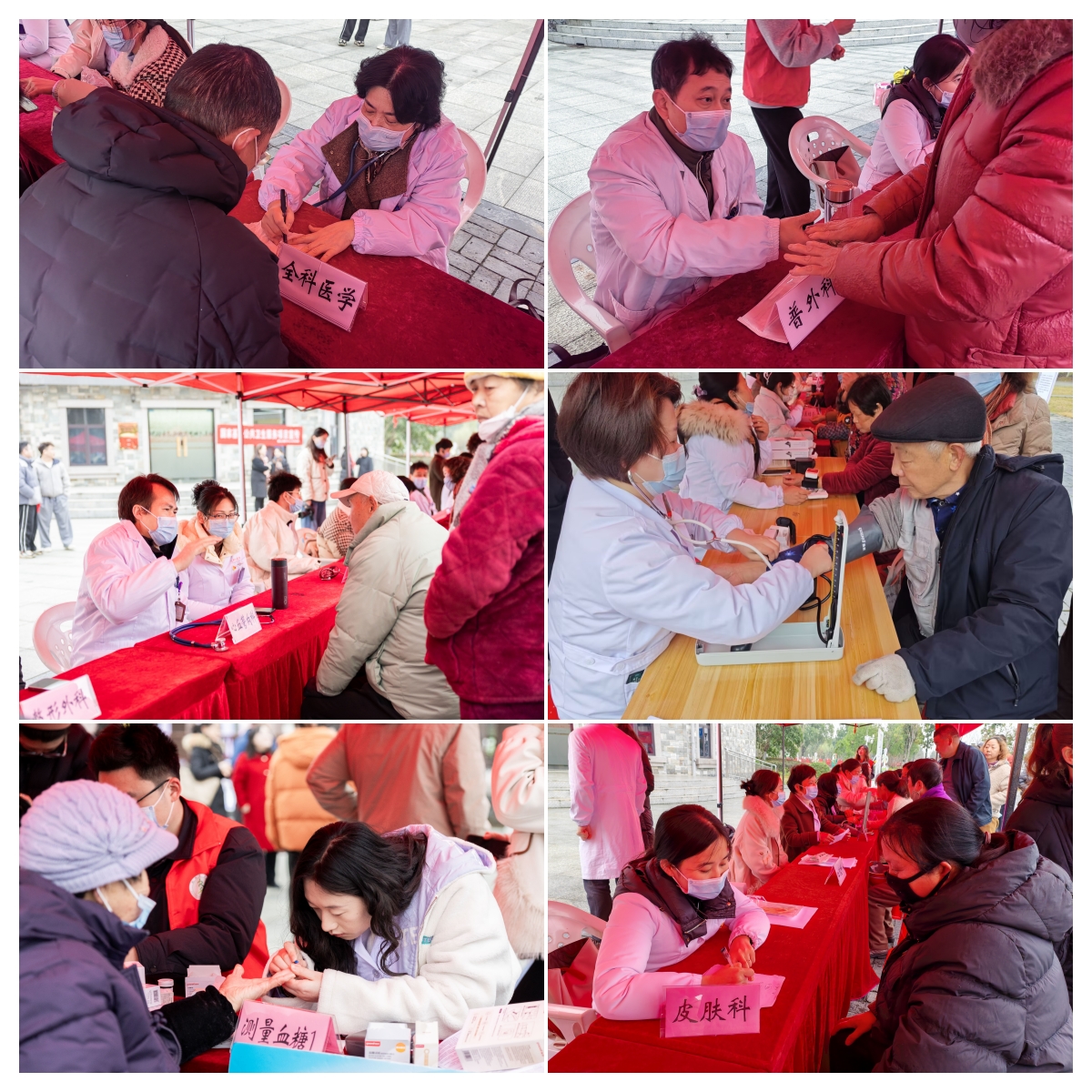 在“健康医者行 义诊暖民心”活动环节,一附院李倩、夏亚斌、潘大彬等专家和研究生志愿者们为居民进行健康义诊。义诊项目包括心血管内科、皮肤科、口腔科、耳鼻咽喉科、妇产科等15个科室,医护党员免费为村民提供测量血压、测量血糖、健康咨询、病情诊断等服务,服务群众200余人。