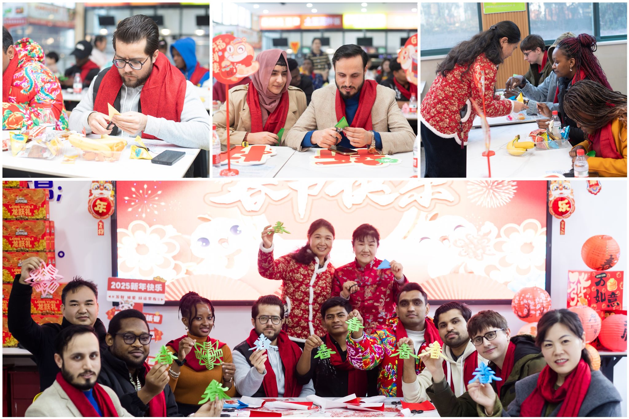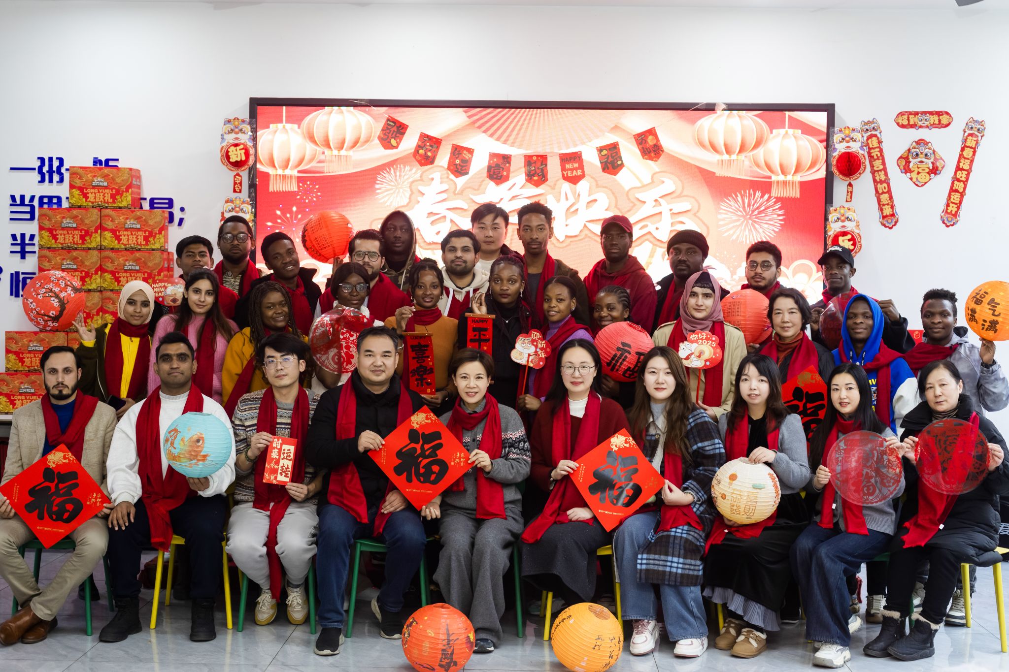 祥龙辞旧岁,金蛇贺新春。为帮助我校国际学生深入了解中国春节文化习俗,沉浸式体验传统中国年味,近日,国际合作与交流处组织开展“乐享中国年”系列活动,30余名国际学生、导师、外教和宿管阿姨齐聚一堂,共同迎接中国农历春节的到来。