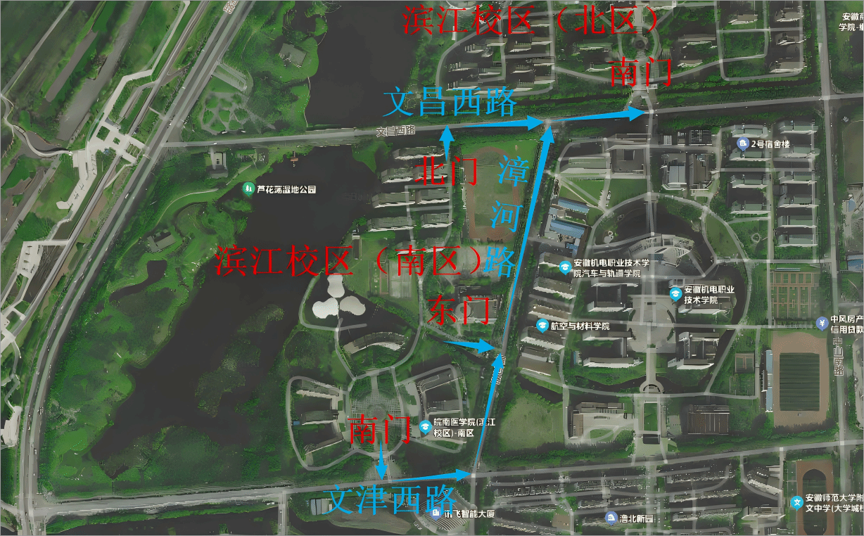 (二)南北校区间往返可按照现场交通指示标志有序通行(通行路线见附件)。